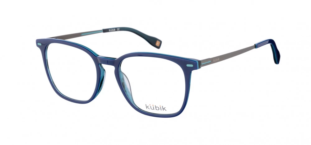 Kübik Urban kollekcióba tartozó, acetát anyagú, sötétkék színű férfi keret, melyet a világoskék berakások és a szárban megjelenő szürke szín tesznek egyedivé. Az acetát anyag miatt könnyű, mégis tartós, a modern, fiatalos, letisztult stílusának, színének köszönhetően pedig minden korosztály számára jó választás.