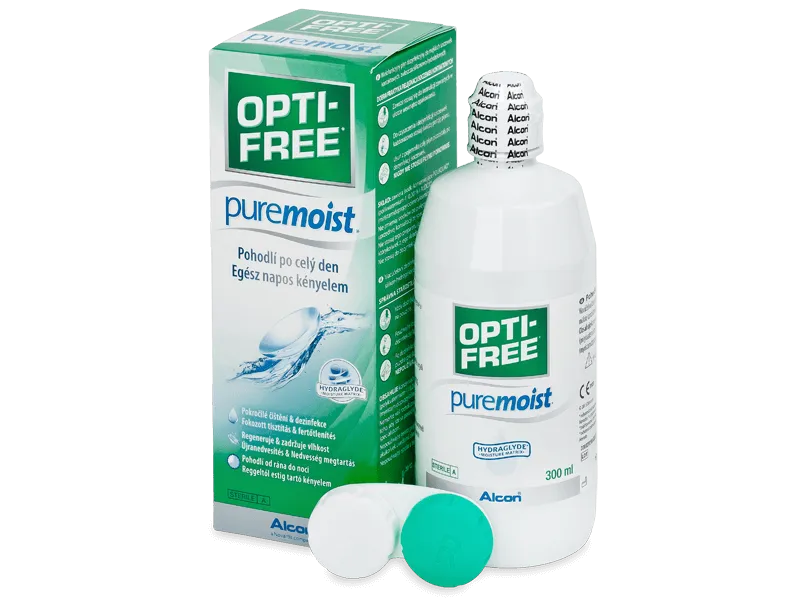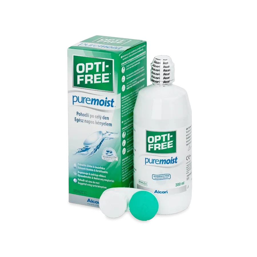 Összetevők: Az OPTI-FREE PureMoist egy steril, pufferolt, vizes oldat, amely nátrium-citrátot, nátrium-kloridot, bórsavat, szorbitot, aminometilpropanolt, nátrium-EDTA-t, két nedvesítő anyagot (TETRONIC 13041 és HydraGlyde nedvesítő mátrixot (EOBO-418- polioxietilen-polioxibutilén), és 0,001% POLYQUAD (polikvaternium-1) és 0,0006% ALDOX (mirisztamidopropil dimetilamin) tartósítószereket tartalmaz.