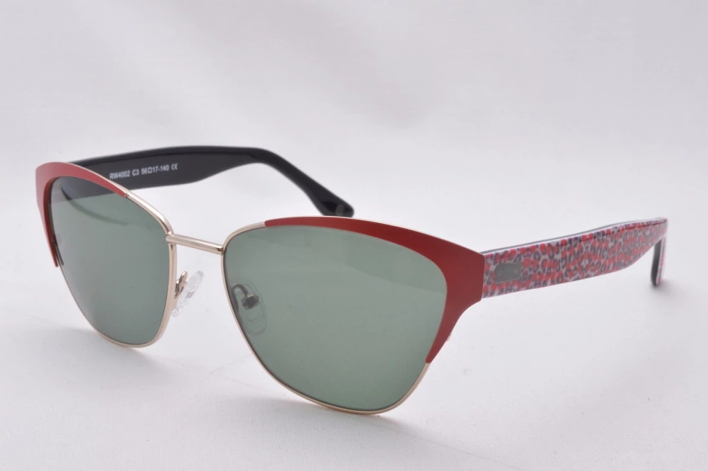 Ez a napszemüveg egy minőségi női keret. Ovális formával és piros színnel rendelkezik. Szilikonos orrtámasza és szürke színű lencséje van.
