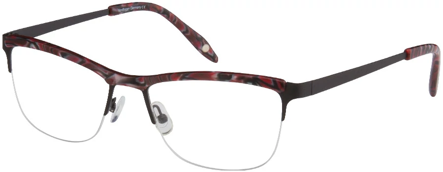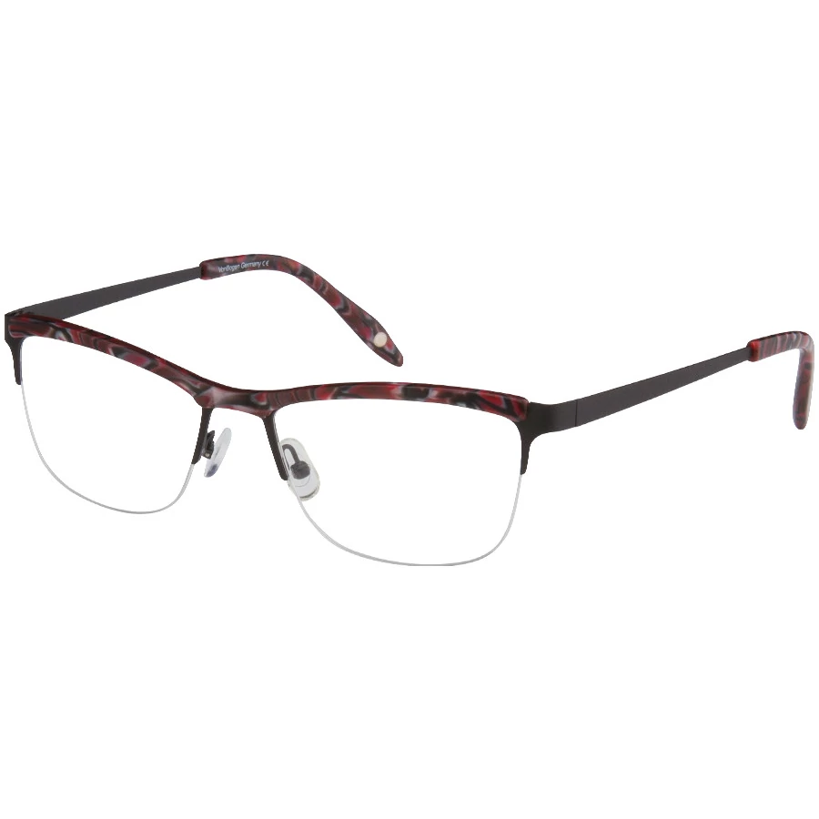 Könnyed, damilos női keret. A front felső része szélesebb, ragyogó piros, szürke, fekete és fehér színek kavalkádja, ezzel káprázatos ívet a szemöldöknek, kiemeli a tekintetet. A damilozásnak köszönhetően a keret alul nem takarja ki az arcot, szára fekete színű, színes szárvéggel. Karakán, de emellett vidám egyéniségek pazar kiegészítője.