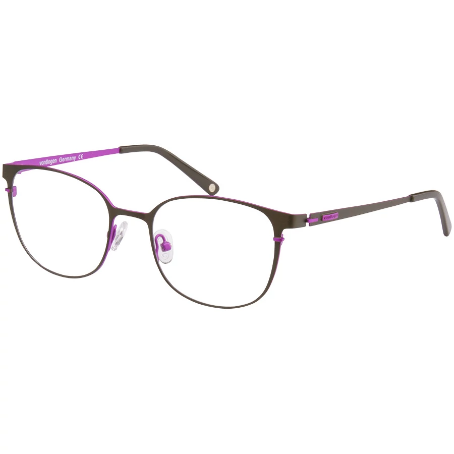 Fémből készült, kisebb méretű női keret. Ovális frontja és szárai is vékony, kecses stílusúak. Fő színét, a feketét nagyszerűen kiegészíti a neonlila szín. Feltűnővé teszi a megjelenést, tökéletes tavaszi-nyári kiegészítő azoknak, akik nem félnek élénk, vidám színeket viselni.