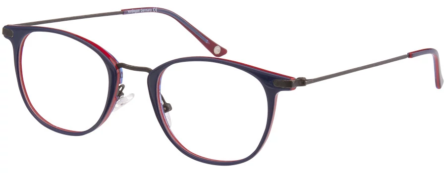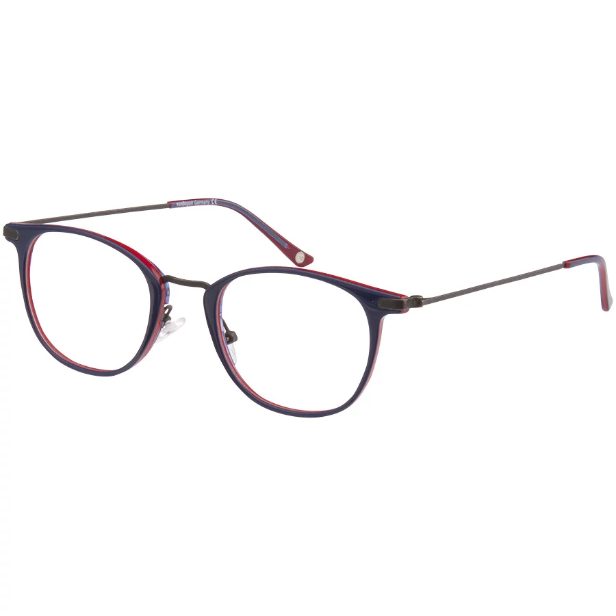 Fémből és acetátból készült, légiesen könnyű, kis méretű női keret. Formája a most sláger kerek forma, kecses, vékony szárakkal kombinálva. Színösszeállítása a trendi kék, piros és fekete. Vidám, modern, stílusos megjelenést kedvelő nőknek.