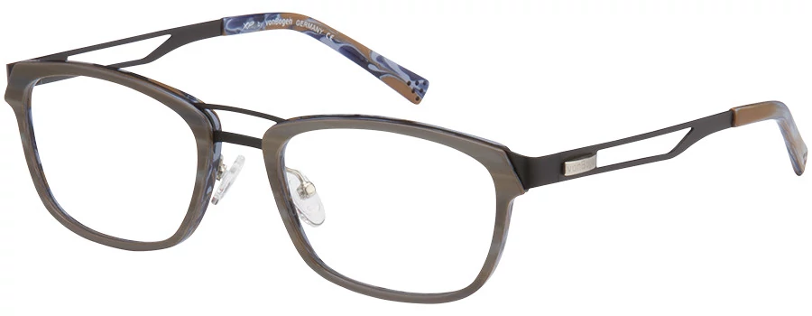Acetát és fém anyagot kombináltak ebben az unisex modellben. Vastagabb frontja, a különleges szármegoldás és a dupla híd határozott megjelenést kölcsönöznek. Mindezt kellemes színekkel ötvözték, mint szürke, fekete és kék. Karakán, határozott, de vidám emberek választása.